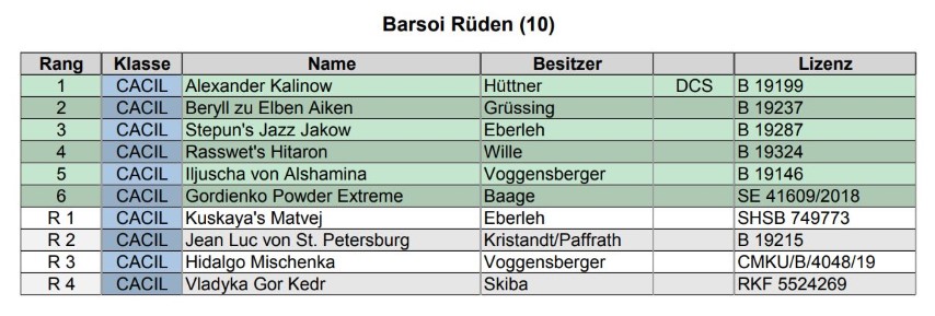 Im 2. Durchgang gab es dann das "Schwestern-Duell! Und Knjaginja verpeilten den Start, lief nach rechts statt nach links. Sie merkte es sehr schnell, und schoß im Barsoi-Affen-Zahn hinterher, dadurch überschoß sie! Dann jedoch lief alles wieder glatt! Natürlich führte das auch ein wenig zu Verwirrung bei Bat Whispers ( Honey )! Naja, so erliefen sich die beiden Platz 2 und 4! Herzlichen Glückwund an die verdiente Siegerin und allen anderen Platzierten! Siesind alle toll gelaufen und es war ein wunderschöner Tag mit Euch und vielen anderen, die man lange nicht mehr gesehen hat.