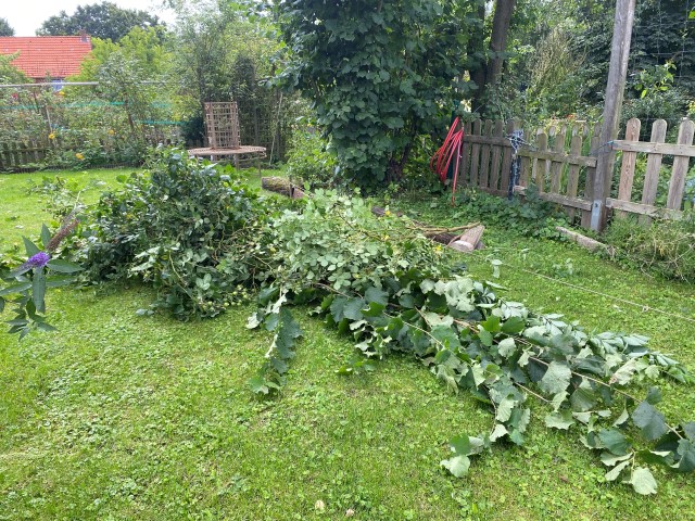 Noch sooo viel Äste müssen geschnitten werden, und ich muß noch sooo viel Kraut zupfen! Hoffentlich spielt das Wetter mit.