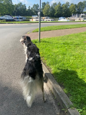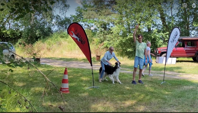 15.10.2023: Am Freitag bin ich mit Gasthündin Knjaginja von David nach Hoope zum coursing gefahren. Ich hatte einen sehr schönen Abend inmitten der "Hooper" und konnte anschließend auch sehr gut schlafen. Die Nacht über gab es ordentliche Regenschauer, am Samstag Morgen schien für uns die Sonne. 2 mal zog ein keiner Regenschauer auf, das war es dann. 2 "elben Äikener" Schwestern waren am Start, das freute mich sehr. Und nach dem 1. Durchgang standen sie Puktgleich an 1. Stelle! Das freute mich sehr, doch alle lagen Punkte mäßig sehr dicht zusammen, es waren ja alles sehr gute Hündinnen am Start!