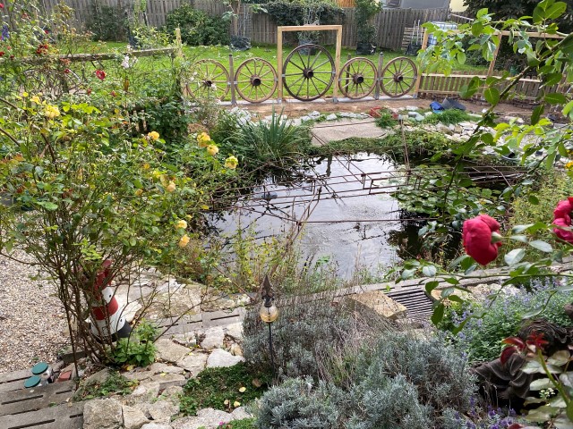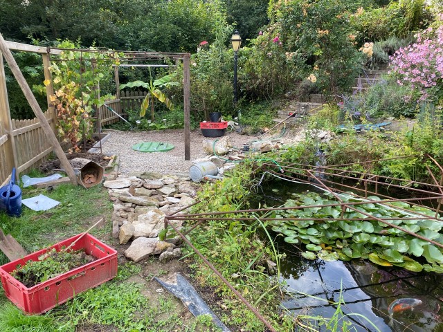 25.11.2023: Diese Woche war mit viel Arbeit verbunden! Garten, Garten, Garten! Alle Kübelpflanzen sind noch einmal umgetopft und ins "Winterquartier" umgezogen. Einige Teichhangpflanzen wurden schon umgesetzt und die Hufeisenkugel hat das Bad im Teich gut überstanden. So habe ich die Möglichkeit, die einzelnen "Pflanzterrassen" neu zu bestücken. Was mich davon etwas abschreckt, ist das Wetter.