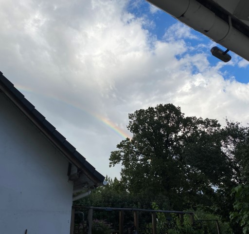 Und dann heute Abend, nach dem Gewitter: Blaulicht auf der Brücke bei uns! Was da los war, wissen wir nicht, vielleicht steht es ja morgen in der Zeitung.