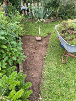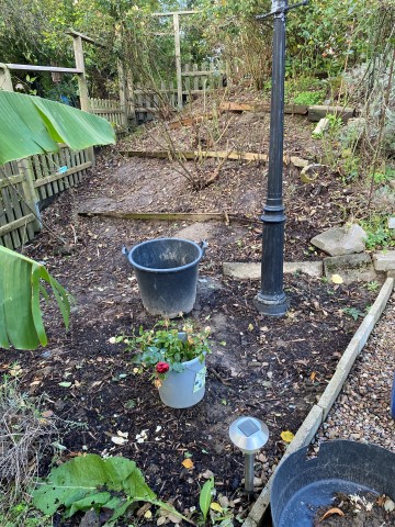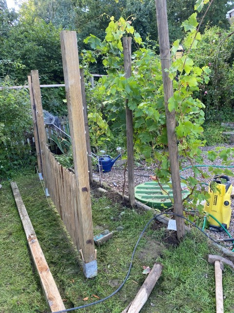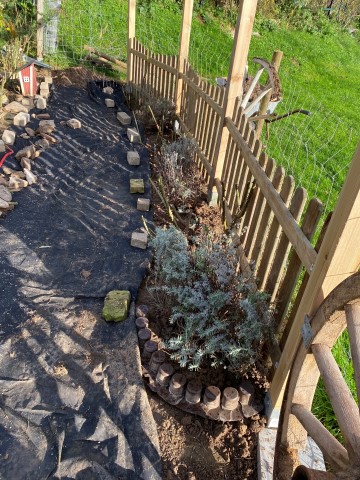 06.11.2023: Heute habe ich den Lavendel umgepflanzt. Er wurde uns zu groß an der Treppe. So kann er gemütlich am Zaun wachsen. Doch es war ein ganz schöner Akt! Vor allem bei dem Wetter! Morgen geht es weiter!