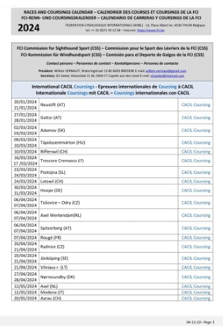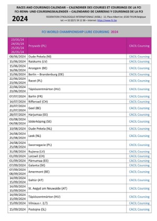 die internationalen coursing-Termine. Eine schöne Auswahl für uns.