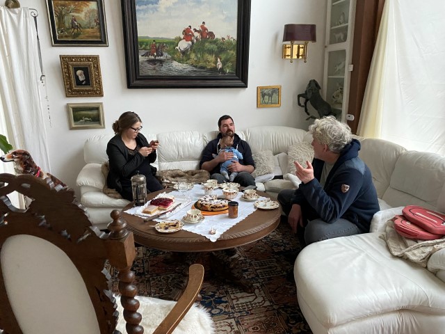 12.02.2023: Gestern hatten wir ganz lieben Besuch, Frauke und Norman waren bei uns. Und auch Jannes, gerade 12 Wochen alt. Das ist so ein süßes Baby, lacht so fein und hat keine Angst vor unseren großen Barsois, weil er das von Zuhause her kennt.