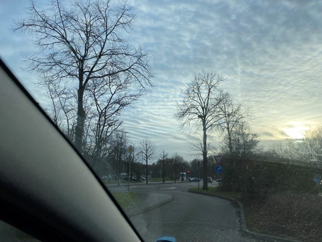 04.02.2023: Gestern war ich auch wieder auf einem Familientreffen in der kalten Heimat, allerdings war der Anlaß kein schöner: Achim`s Onkel wurde beerdigt. Achim mußte arbeiten, und ich sah "Wellen" am Himmel, als ich zurück fuhr.