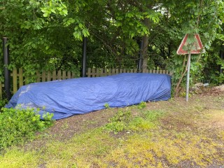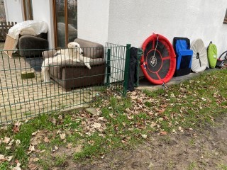 21.02.2023: Heute habe ich das Welpen - Equipment ausgeräumt! Und abgedeckt, falls es regnet! Dann kommt die Wand raus.