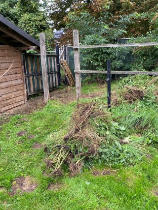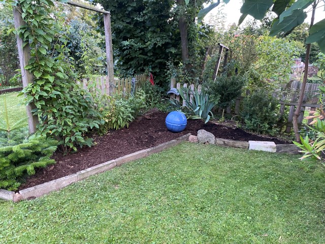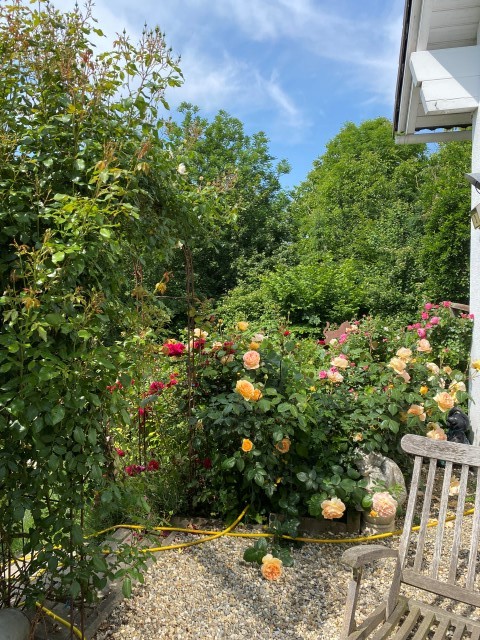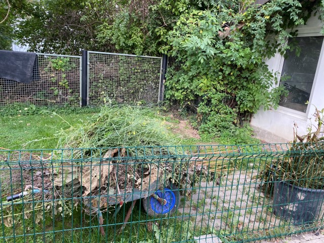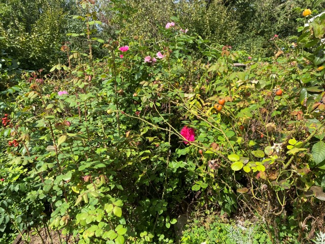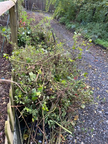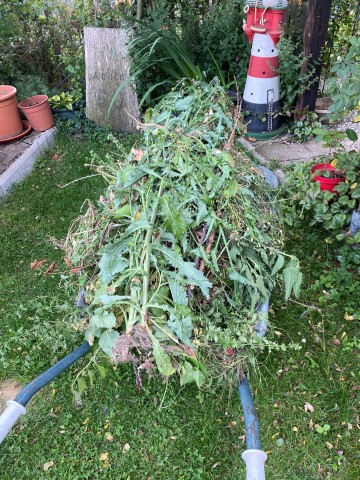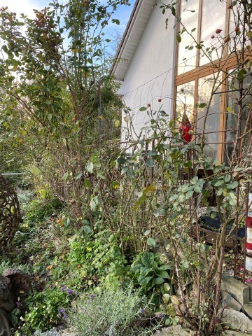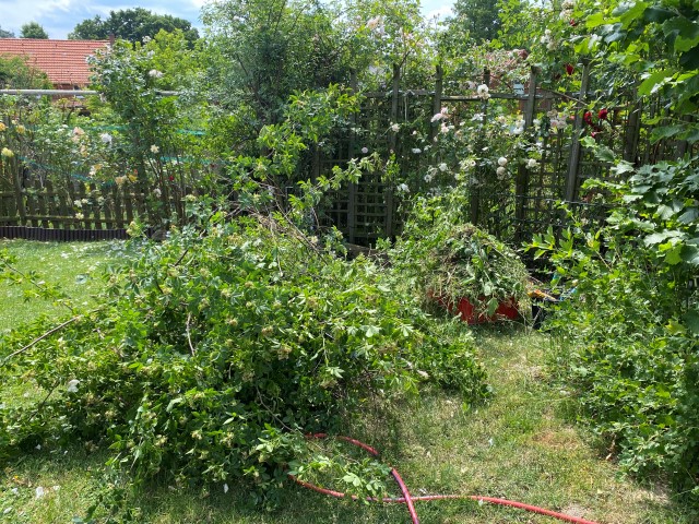 09.10.2023: Meine Arme reichen von hier bis Dortmund, so habe ich mich gequält! Die ersten 2 Rosen sind von Kraut befreit, geschnitten und dann umgepflanzt worden. Die ersten 2, und es sind 14!!! Und dann die blöde Zitronenmelisse!!! Überall hat sie sich verbreitet! Ebenso weitere unangenehme Pflanzen, wie Efeu, Storchenschnabel, Hopfen,-Horn- und Aufrechter Sauerklee, Ackerwinde und wilder Hopfen! Bergeweise was zu entsorgen!