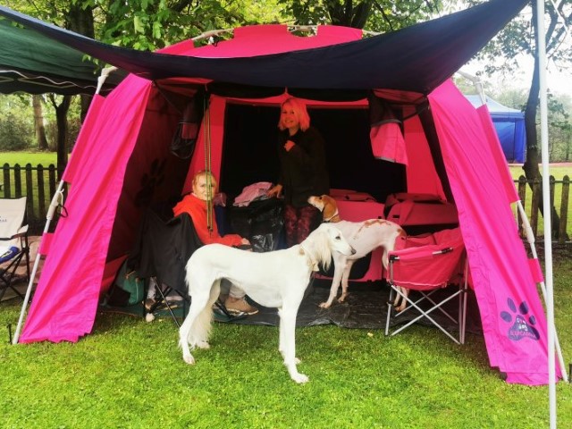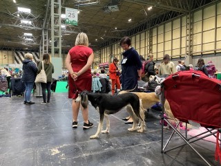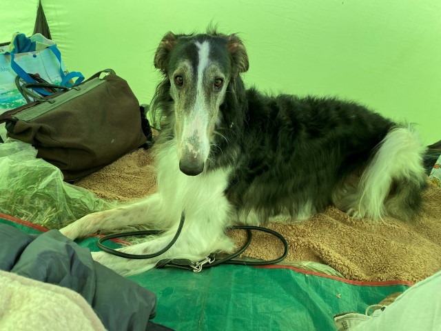 Brilliant und ich haben später noch "Fellpflege" betrieben, ich in der Dusche, er mit der Bürste, dann schauten wir Fernsehen auf englisch. An Samstag waren u.a. die Windhunde dran. Wir waren ganz früh da, damit wir uns gut einrichten konnten.