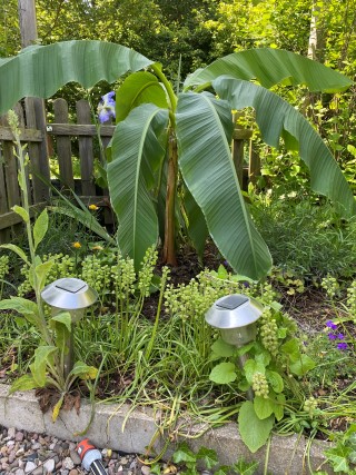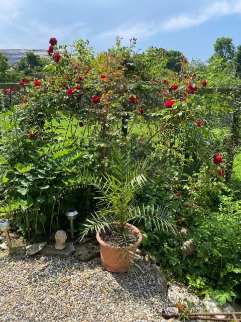 Die Palme "Frank", und die Kois im Teich sind auch aktiv. Selbst "Nili" schwimmt wieder.