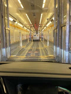 13.03.2023: Der Tag danach!!! Am Donnerstag sind wir nach England/ Birmingham aufgebrochen. Brilliant und ich fuhren zuerst nach Dortmund, von dort aus brachte uns Jürgen nach Frechen, wo wir zu Stephi und Nadine umstiegen. Die jedoch hatten Stau und waren 1 1/2 Stunden zu spät da. So mußten wir uns richtig sputen, um den Autozug pünktlich zu erreichen! Durch Deutschland, Belgien und Frankreich! Toll gefahren, hat geklappt! Wir waren pünktlich! Schnell durch die Ped-Kontrolle und fertig für den Zug!