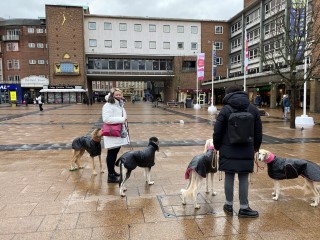 Am Freitag hatten wir frei und wollten Birmingham unsicher machen: 5 große Windhunde und 3 "lustige Weiber", wer kann da widerstehen? So saßen wir beim Frühstück und waren total überrascht, daß eine junge Familie mit Kleinkind schon Gin Tonic trank! Frei nach dem Motto: Hast Du schon gefrühstückt?-Nein, noch keinen Tropfen!"