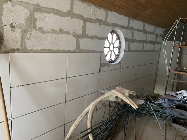 Achim hat eine Wand gefliest und schon Fermacell angebracht. Ich habe mich riesig darüber gefreut!