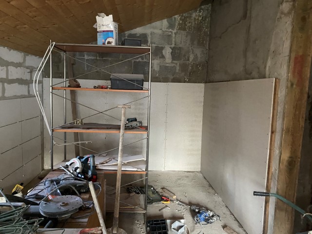 Jetzt müssen die Wände der angeschlossenen Futterkammer verputzt und gefliest und auch der Fußboden muß gefliest werden. Doch das wird erst in einer Woche passieren. Dann ist das Welpenzimmer ein sehr großer Raum mit weit mehr als die erforderlichen 15 m2.