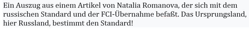 13.11.2023: Manchmal wundert einen nichts mehr!!! Hier ein interessanter Punkt, der bei der Übernahme des russischen Standards vom FCI und anderen Nationalen Verbänden einfach weggelassen wurde!