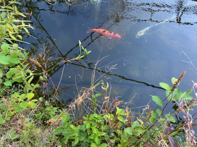 Im Teich schwimmen u.a. munter "Leo", "Beluga", "Che" und "Ghost". 3 der "Kinder" kann man auch sehen.