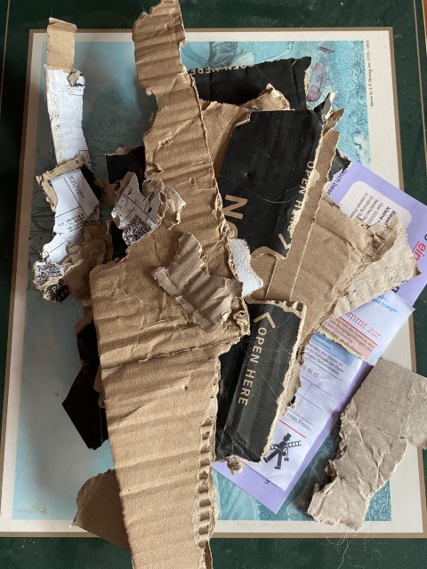 26.10.2023: Die arme Knjaginija! Hat sich so viel Mühe gegeben, Papier und Karton zu zerreißen, und dann kommt das böse Frauchen von draußen rein und schimpft!