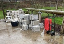 7 große Kübel von Kleinschutt, und dazu Massen an großen, heilen Steine.