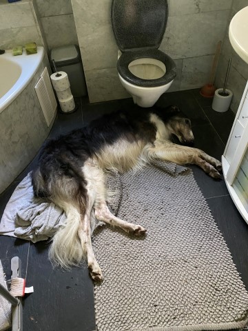 Heute Nacht ging der Rauchmelder los! Ich aus dem Bett, mit dem Besenstiehl das ruchlose Ding ausgestellt. Dabei trat ich in der Küche auf einen Knochen, den die Barsois heimlich zwischen ihren 2 Betten versteckt hatten. Das tat weh, doch ich dachte mir nichts dabei. Wieder im Bett dauerte es ca 15 Minuten, da ging der Rauchmelder erneut los, ohne Grund, ich ihn wieder ausgestellt, humpelnd. Wieder oben angekommen, stellte ich fest: Fußsohle aufgeschnitten. Also wieder runter zum desinfizieren! Der Rauchmelder meldete sich auch wieder. Die Barsois schauten lediglich verschlafen und dachten sich: Was hat die Alte nur? So versuchte ich, das Ding zu öffnen, um die Batterie raus zu nehmen. Doch das ging nicht so leicht, naja, jedenfalls kann ich jetzt nur unter Schmerzen laufen!