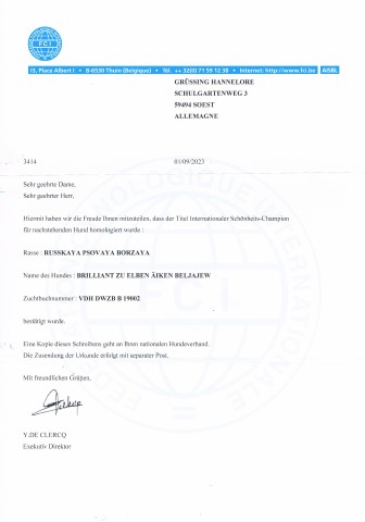 Von klein zu ganz groß! Mein schönes, erfolgreiches Brilliantenkind! Brilliant zu Elben Äiken Beljajew, DM-frei, gekört.Dt. Schönheits-Champion DWZRV, Dt. Champion VDH, Champion of Bosnien-Herzegovina, Champion Foederation Bosnien- Herzegovina, Sarajevo-winner 2022, (crufts -Qualifikation).Dt. Jgd-Ch. VDH, Dt. Jgd-Ch. DWZRV, Annual Trophy Junior Winner 2018, Verbandsjugend-Sieger 2018, Junior Anniversary Winner Donaueschingen 2018.