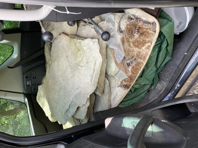 11.01.2024: Heute war es immer noch sehr kalt, doch wir besuchten "unseren" Steinbruch und packten das arme Auto mächtig voll! Morgen wird der Rest der 4. Stufe fertig gestellt! Hoffentlich klappt es mit dem Wetter!