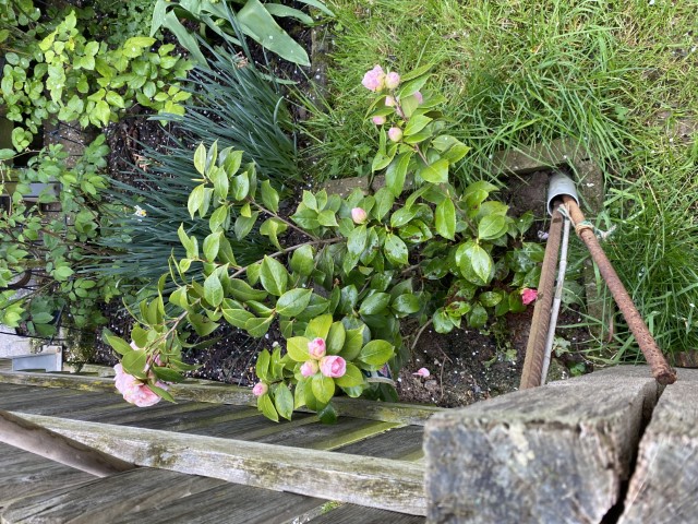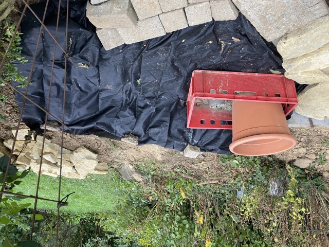 Heute habe ich das Ankleidezimmer umgeräumt, gestern wieder viel am Teich gewühlt: Platten unter den Zaun gelegt, also wieder Erde bewegen, und das am Hang! Glitschig und steil! Dann die Wurzel eines Sommerflieders und eine wilde Rose entfernt! Alles bei Nieselregen!