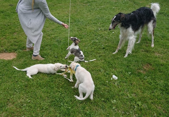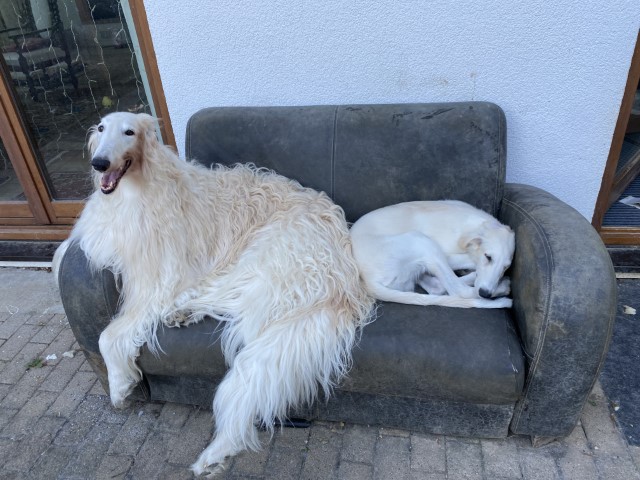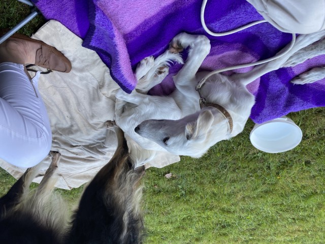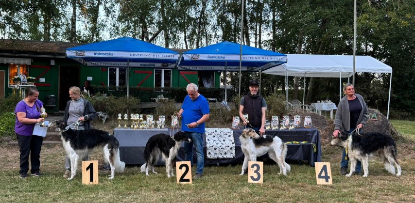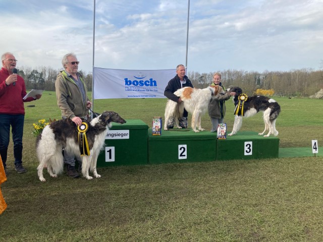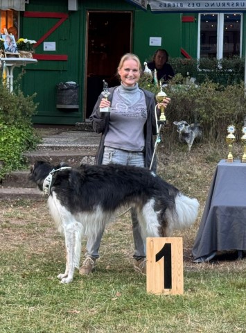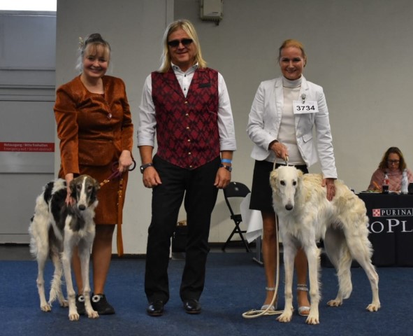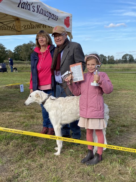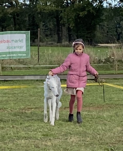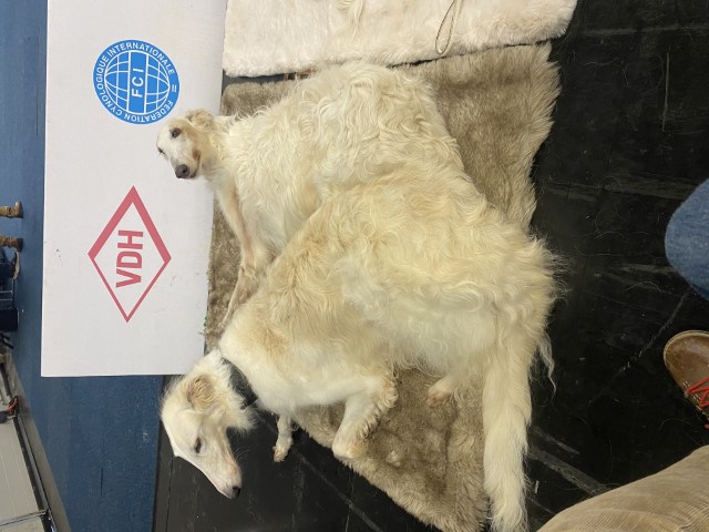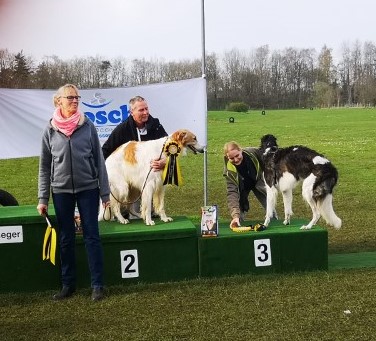 Wir waren dort mit Freunden verabredet und freuten uns schon sehr darauf. Die Barsois waren gleich zu Anfang dran. So waren wir auch früh fertig. Wir hatten viel zu erzählen und sehr viel Spaß und zu lachen. Richter Olaf Knauber war sehr begeistert von unseren Jüngsten! Wir auch, denn sie waren so relaxt und ließen sie durch Nichts und Niemanden beeindrucken. So bekamen sie auch tolle Bewertungen. Für sie war es eine schöne Übung!