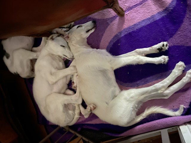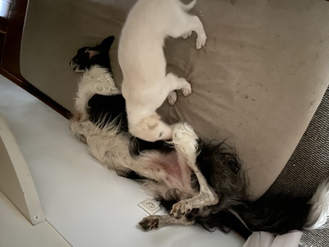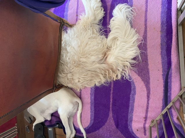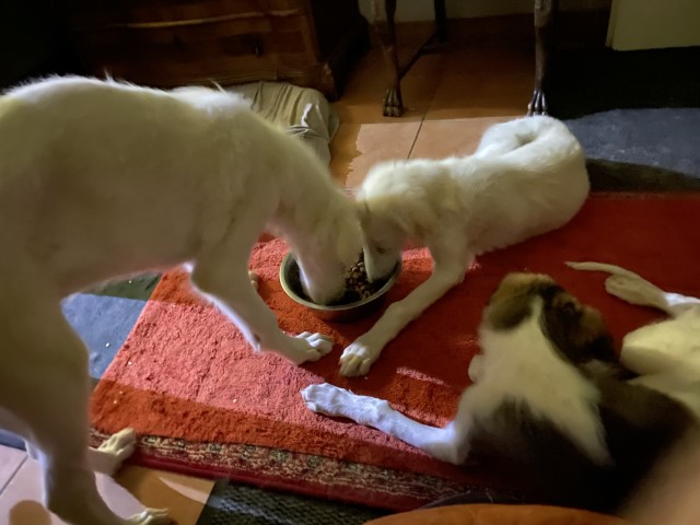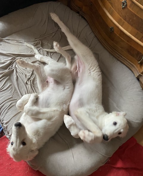 21.10.2024: Ich mache mir große Sorgen um unseren kleinen "Weißen"! Seit ein paar Tagen frißt er nicht mehr richtig und liegt träge rum. Leo "parkt" meistens fürsorglich neben ihm. mal schaun, wie sich das ausgeht.