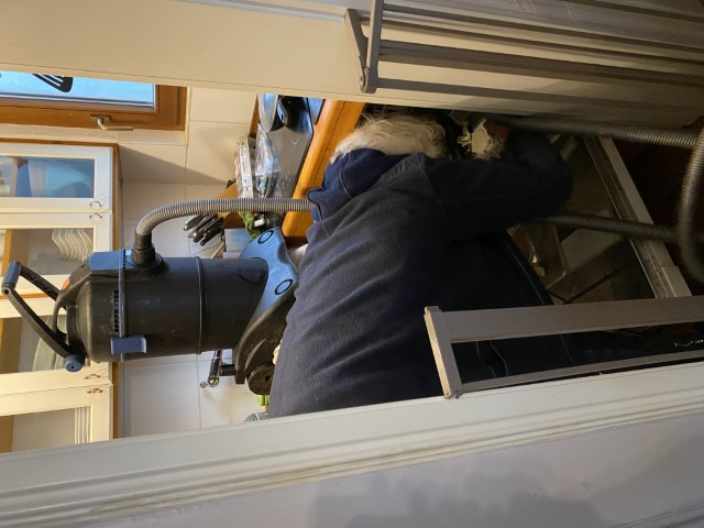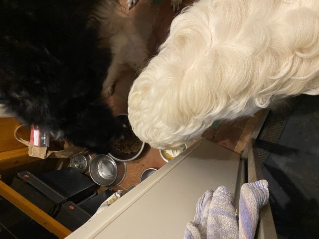 16.12.2024: Die Spülmaschine pumpt nicht mehr ab! Das ist was für liebe Helfer Jürgen und Björn! Mit dem Teichsauger ausgesaugt, dann raus mit ihr! Kein Platz mehr in der kleinen Lufthansaküche!, Also mit der Sackkarre raus in den Pferdestall!Dumm nur, daß ein paar Plastikteile auf dem Boden liegen blieben. Die fand ich etwas später in Obhut der Barsois! Die Maschine geht wieder, doch diese Teile müssen nun neu gekauft werden.