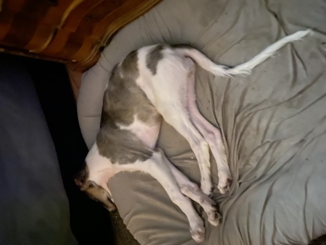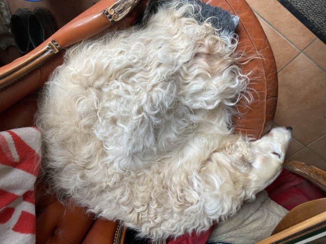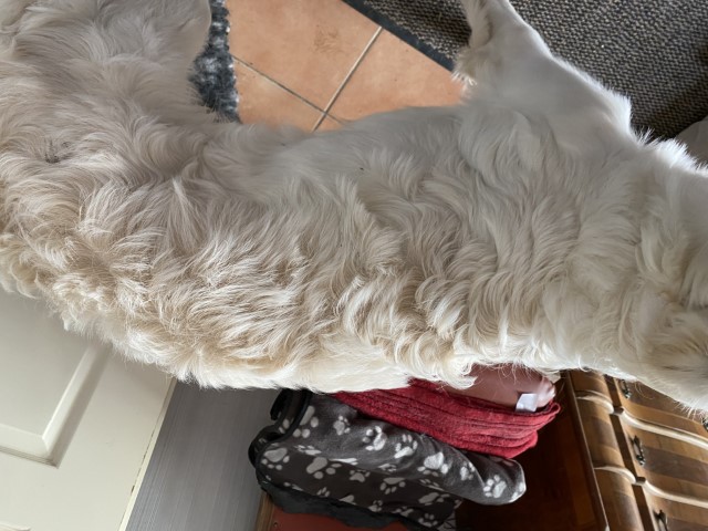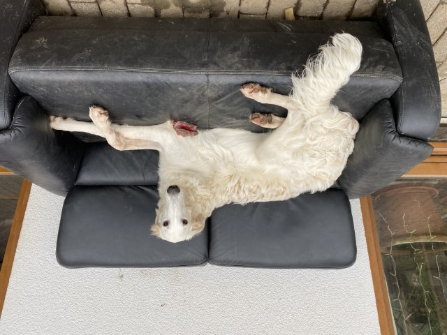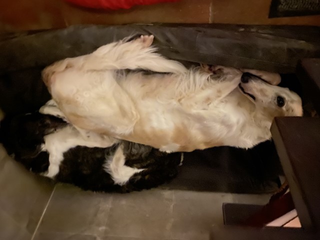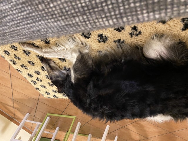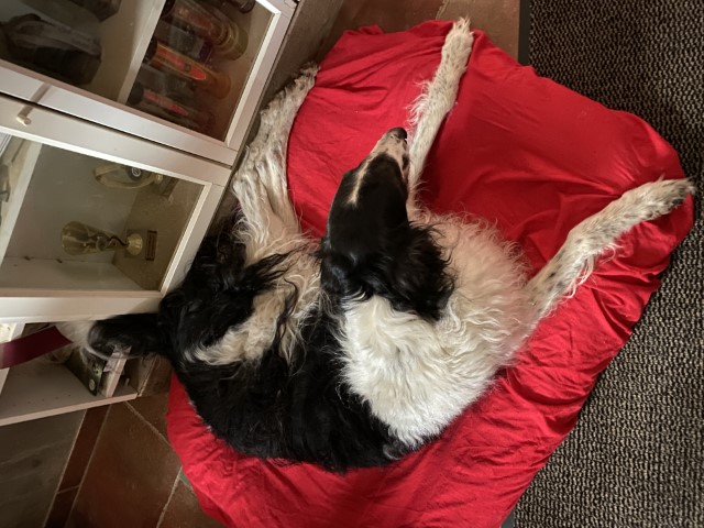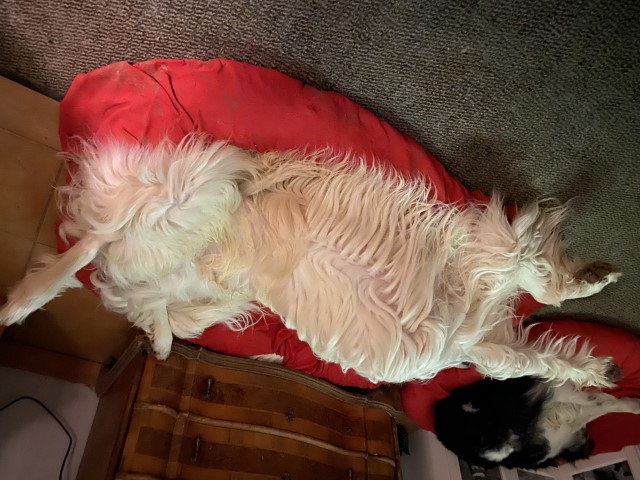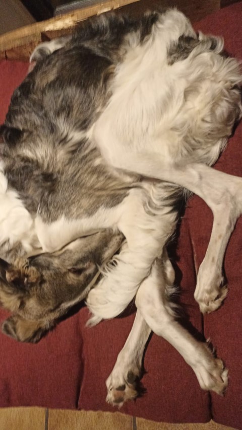26.01.2023: Ein total satter Hund ohne Kopf! Brilliant rekelt sich genüßlich.