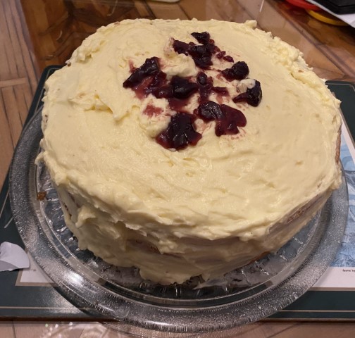 Das "Schaf" und meine Torte, derweil lümmeln Amethyst und Beryll in der Küche.