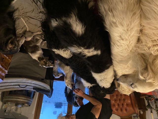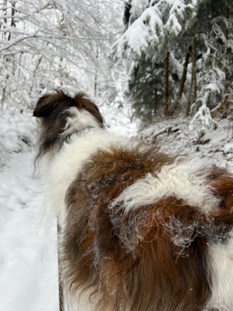19.11.2024: Ich muß eins einfach mal sagen, ich liebe unsere Hunde! Alle, bedingungslos! Sie sind einfach toll! Sie sind lieb, sanft, gut! Sie passen auf mich auf, wenn ich alleine bin, und sie trösten mich, wenn ich traurig bin! Sie sind einfach traumhaft, auch, wenn ich sie manchmal mal sonst wohin wünsche! Wenn sie die Sofas zerlegen, die Post zerreißen, Schuhe verschleppen und wer weiß was sonst noch anstellen! Sie sind dennoch die besten! Danke, daß es Euch gibt! Der 1. Schnee, Odaloij findet das gar nicht so gut!