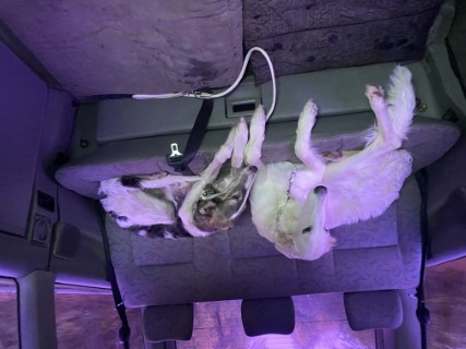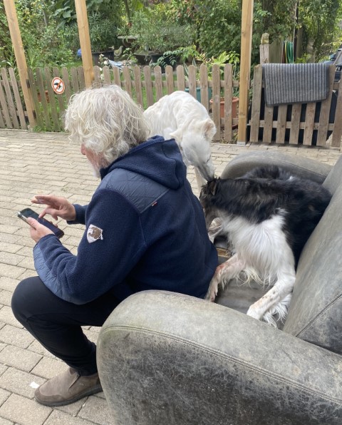 04.12.2024: Kaum ist Achim wieder an Bord, da geht die Tür nicht mehr zu! Eine offene Tür im Winter? Na, das darf doch nicht wahr sein!!! Verzweiflung macht sich breit! Was nun??? Sofort boten sich Jürgen und Björn an zu kommen, doch was hätten sie tun sollen? Dennoch ganz lieben Dank für Euer Hilfsangebot! Also im Internet suchen? Doch warum in die Ferne schweifen, wenn das Gute ist so nah? Unser Nachbar ja hat eine Möbeltischlerei, und er hat sofort 2 Mitarbeiter geschickt, die sich der Tür annahmen. Und meine Befürchtung bestätigte sich nicht, es waren nur 2 Magnete, die sich verschoben hatten! Nach 2 Minuten schloß sie wieder! Wir freuten uns alle drei darüber, und außer einen großen Dankeschön wollten die beiden nichts haben! Doch, bevor die beiden kamen, habe ich noch die "Hundenasen" abgewaschen! Die Auffahrt ist freigeschnitten, der Pferdeanhänger war bid oben hin voll! Jetzt wird noch etwas nachgearbeitet und dann kommt noch wieder Schredder auf das Beet, es soll ja wieder ordentlich aussehen!
