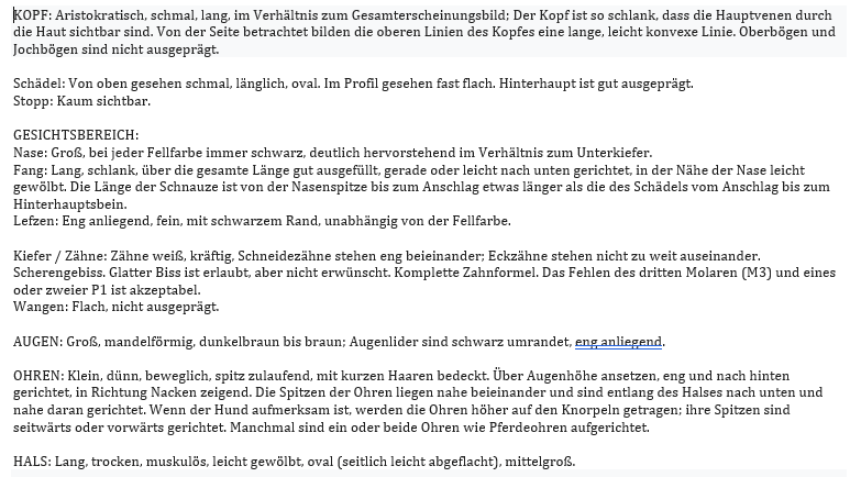 18.11.2024: Die Rasse Barsoi besticht durch die Vielzahl ihrer Variationen in Form und Farbe, die alle zulässig sind. Für mich ist der Adel des Hundes wichtig, und der beginnt bei mir beim Kopf. Der Standard sagt dazu: