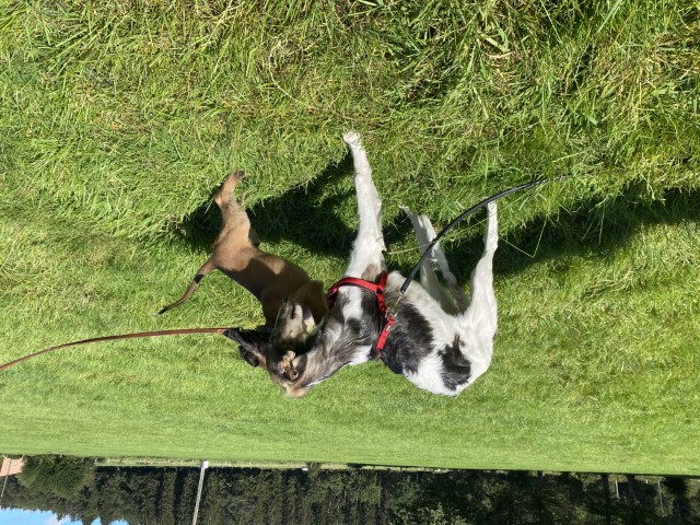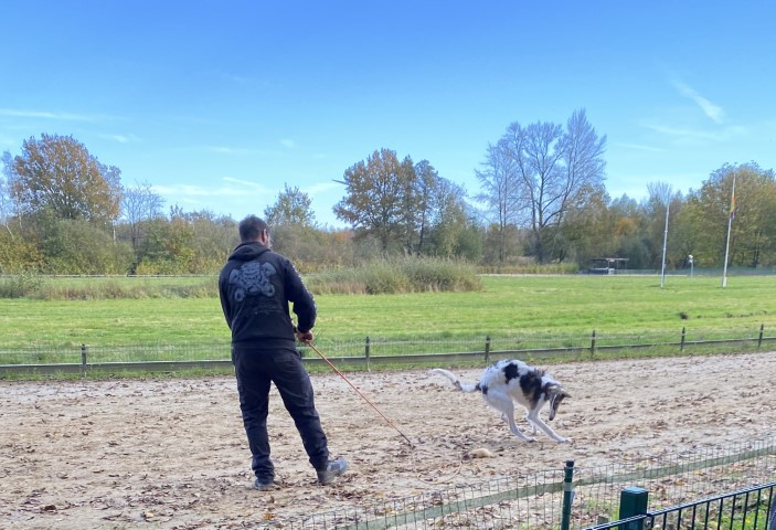 25.11.2025: Naß und windig ist es, und Corund findet, das sei das ideale "Windhundwetter", schüttelt sich, und alles ist naß!