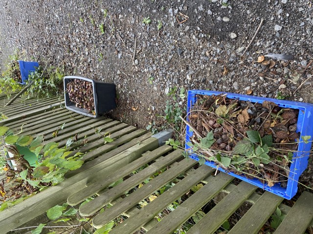 20.10.2024: Es ist zwar Sonntag, doch das Wetter ist trocken. Leise, ganz leise gleitet der Schrubber über die Einfahrt und fegt die Kastanien zusammen! So sehr ich diesen Baum auch liebe, er ist ein Kind von Opa`s alter Kastanie, die leider bei meinem Elternhaus dem Blitz zum opfer fiel, so sehr "hasse" ich "Deeke Christian" im Herbst! Diese vielen Kastanien und deren stacheligen Puhlen! Nichts für zarte Hundefüße!
