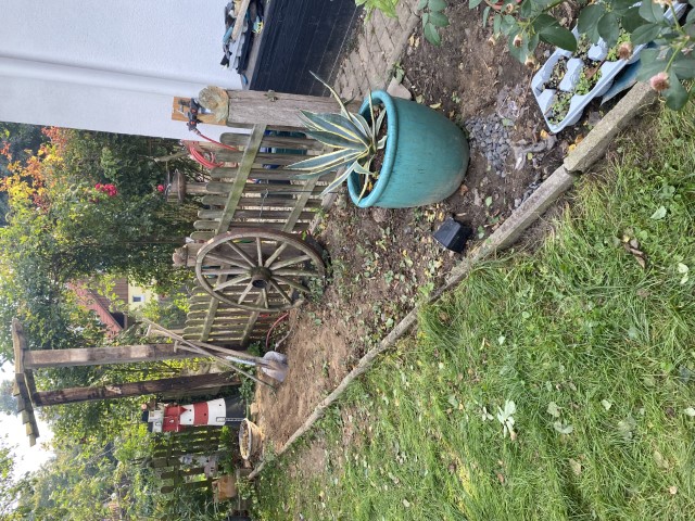 18.10.2024: Arbeit, Arbeit, Arbeit! Das Wetter ist gut, zwar nicht gut genug, um Rasen zu mähen, doch vieles anderes wartet, getan zu werden. So war ich die Tage mächtig im Garten. Endlich habe ich den Kiwi ausgebuddelt und in einen Kübel gepflanzt, vorübergehend, denn er soll einen neuen Platz bekommen und einen Kumpel auch noch dazu. So muß nur noch das Gerüst weg, damit unsere Tanne Netty wieder einen Solitärplatz hat.