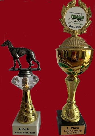 Vet.-Frühjahessieger 2022, Vet.-Europasieger 2022 DWZRV-Coursing-Ch., DWZRV-Sieger S&L 17, DWZRV-Sg. S&L 2017, LU-C, CACIL-Prüfung, FCI-coursing-Lizenz Prädikatskörung für S&L