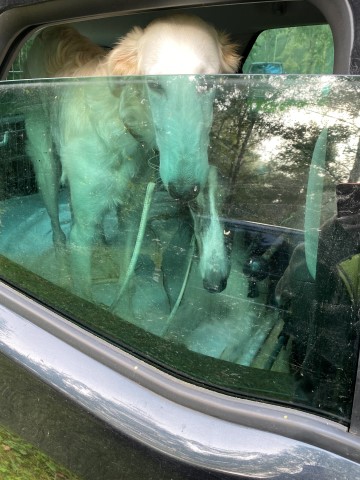 Ohje! Ich untersuchte ihn und ahnte schon Schlimmes. Ab zum Tierarzt, und ja, er hat einen Krallennagel verloren! Weiß der Geier, wie er das angestellt hat, also ein Antibiotikum, Schmerzmittel für eine Woche und gut. Die Saison ist zu Ende, er braucht nirgends mehr hin, und der Nagel wächst ja wieder nach! Glück im Unglück! Doch er war mit dem "Blutverlust" nicht alleine, solidarisch, wie ich so bin, habe ich mir in den Daumen geschnitten, es jedoch auch erst bemerkt, als meine Hand blutgetränkt war. Jetzt jammern wir beide um die Wette: Frauchen und ihr Hund!