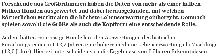 07.02.2024: Das fand ich, und ich denke, diese Metaanalyse räumt endlich mit dem Vorurteil auf, Mischlinge seien gesünder und langlebiger als Rassehunde!