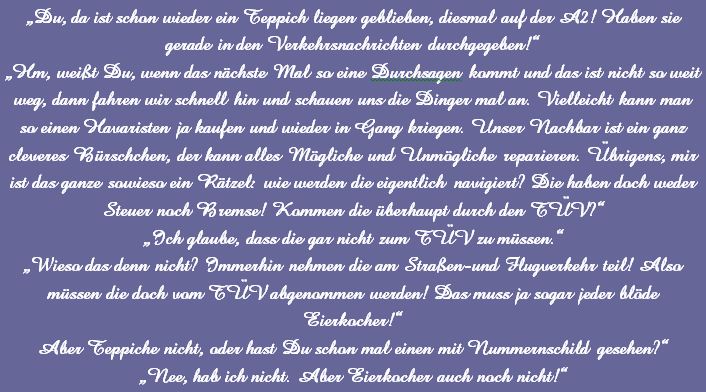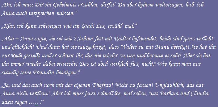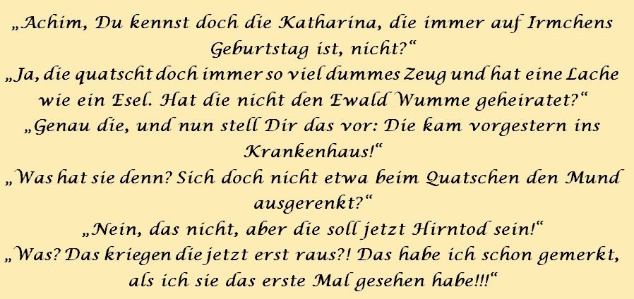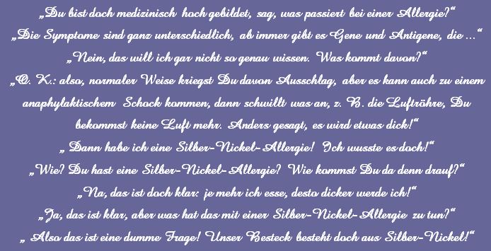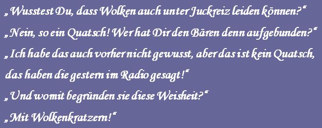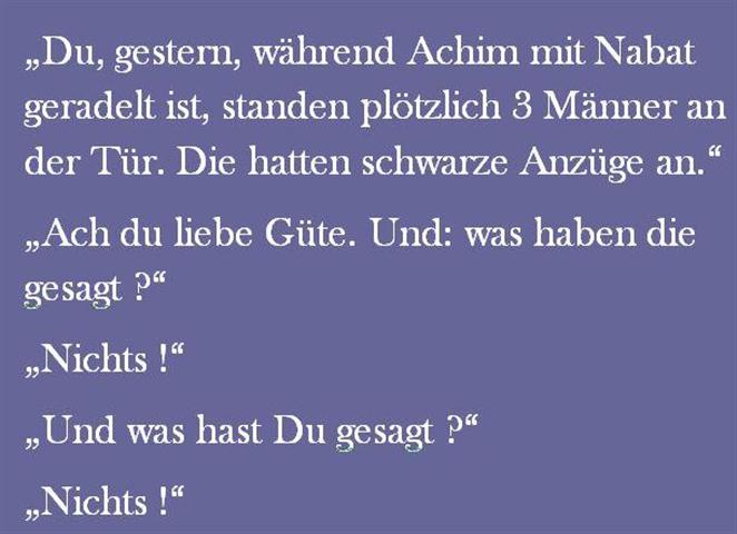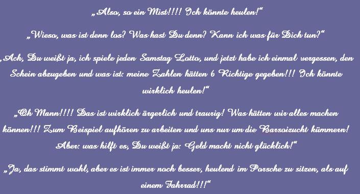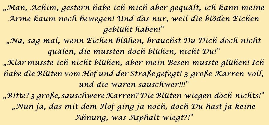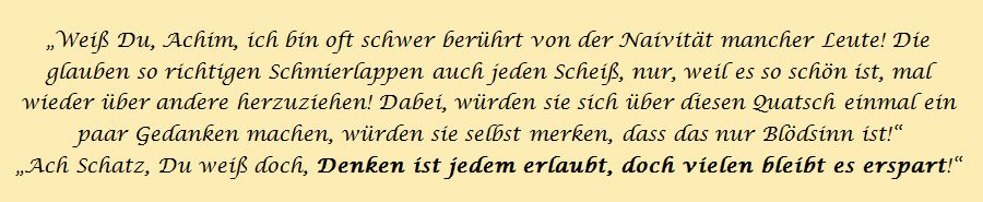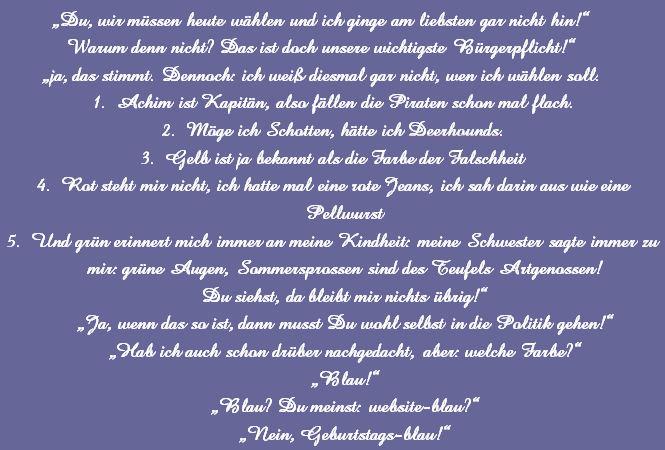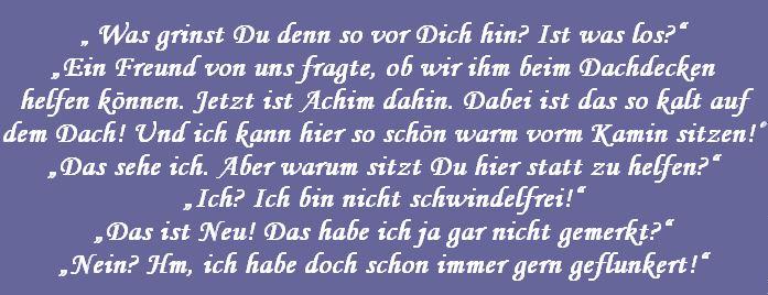Die Sprüche der Wochen ....Zu Anfang war unsere website blau! Doch, nachdem ich allein für sie verantwortlich war, habe ich sie komplett geändert, weil ich an diese Zeiten nicht mehr ständig erinnert werden wollte!