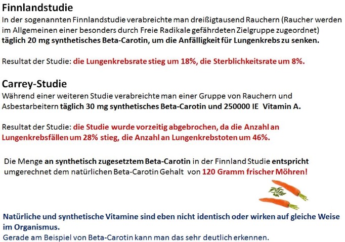 Hier ein paar Studien, die zeigen, dass künstliche Vitamine krebserregend wirken können und nicht helfen wie die natürlichen Vitamine: