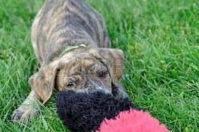 und lassen Sie den Welpen ziehen, anstatt an dem Spielzeug zu