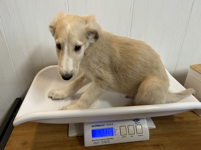 Welpenzimmer bei den Kleinen. Keine Barsois sollen alleine sein und Angst vor dem