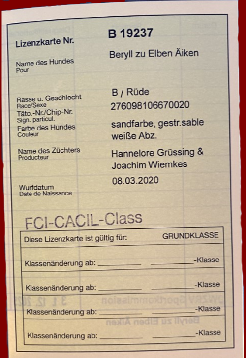 Deutscher Champion VDH, DWZRV-Leistungsurkunde Coursing, CACIL-Prüfung
