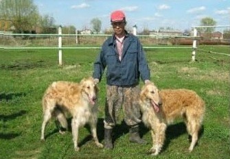 Wie ein Rennpferd holt auch der Barsoi, anders als andere Windhundrassen, seine Sprungkraft fast ausschließlich aus der Hinterhand. Er macht unglaublich lange Sprünge, und man sagt ihm nach, seine Sätze seien die längsten aller Windhunde. ![]() Wenn ein Barsoi jagt, dann hält er seinen Kopf nie höher als den Rücken, meistens tiefer. Eine Ausnahme: Wenn so unübersichtlich ist, dass er die Beute nicht mehr sehen kann, dann kann er auch mit hoch erhobenem Kopf jagen. Gut, das gibt es in Russland, bei uns sind die Coursinggelände eher kurz gemäht. Wenn ein Barsoi einen Hasen fängt, macht er einen Riesensatz und schnappt ihn von hinten in den Nacken. Was bedeutet der Jagdeinsatz jetzt für das Exterieur des Barsoi? Nun, die Barsois sollten nicht zu groß sein, denn, wenn der Hase seine "Haken" schlägt, bzw ein Richtungswechsel durch eine "Rolle" stattfindet, unterliegt der Hund der allgemeinen Fliehkraft, und bei zu großen, zu schweren Hunden wird dadurch der Wendebogen zu groß, er verliert viel Zeit und der Hase entkommt. An dieser Stelle möchte ich auf den Standard eines zweiten russischen Windhund hinweisen, der sich parallel zum Barsoi entwickelt hat, die sich sehr ähnlich sind, bis auf das Fell, und der das gleiche Beuteschema hat ( mit Ausnahme des Wolfes ), der Hortaya Borzaya. Hier heißt es unter Punkt 1: Allgemeines Erscheinungsbild, Körperbau und Verhalten: Schulterhöhe: Rüden von 65 bis 75 cm, Hündinnen von 61 bis 71 cm. Der ideale Jagdwindhund muss zwischen 60 und 70 cm Schulterhöhe haben, wie der Verwendungszweck es verlangt. Der zu kleine Hund kann Füchse und kleine Antilopen nicht greifen, aber der zu große Hund ist nicht wendig und hat auf hartem Grund weniger Stehvermögen, so dass er nicht so ausdauerd jagen kann, wie es notwendig ist. Das waren ja auch ungefähr die Größen der alten russischen Barsoizüchter, und auch heute noch bevorzugen die russischen Jäger Barsois, die 80 cm Schulterhöhe nicht überschreiten, weil die größeren, schweren Hunde weder wendig genug, noch ausdauernd und schnell genug sind. Es ist sehr interessant, sich mit russischen Jägern zu unterhalten, man kann viel lernen. Ich habe mein erstes Zuchtseminar bei der "Legende" Tariel Gabidaschwili und Frau Natalia Grebetskaja abgelegt, die sich auch mit der Jagd mit Barsois beschäftigten. Dort wurde uns u. a. auch gezeigt, wie man Barsois auf "Wolf" abrichtet! Ich selbst sehe ja auch die Unterschiede meiner Hunde beim Coursing. Der 83 cm große Brilliant hat einen Bremsweg wie ein Güterzug und einen riesigen Wendekreis. Nur dank seiner großen Kraft kann er sich wieder an den Puschel ranarbeiten. Während der kleinere Amethyst ( 78 cm ) mit seinem Laufstiel nicht so raumgreifend ist, ist er enorm wendig und somit sehr erfolgreich. Opal, 81 cm, hat einen sehr tollen Laufstiel und ist auch noch entsprechend wendig genug. Diese paar cm machen schon hier einen riesen Unterschied, und keiner der drei hat die Maximalgröße von 86 cm, die der Standard zuläßt! ___________________________________________________ Etwas ganz Besonderes ist in Russland ge-, oder besser: wiedergefunden worden, die alte Form der russischen Barsois! Ein Jäger, weitab des sozialen Medienzugangs, züchtete sie weiter und jagt mit ihnen, wie eh und je! Die Rüden sind nicht größer als 78 cm, sie sind in der Front breiter als die heute modernen. Viele russischen Jäger möchten jetzt diese Barsois in ihre Zucht mit einbringen.