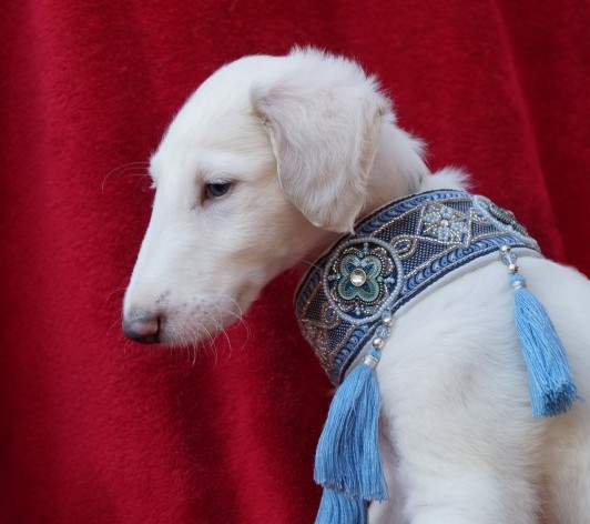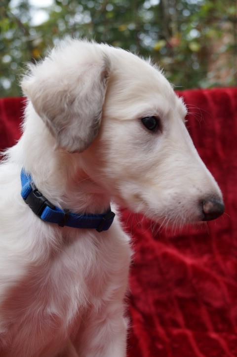 29.01.2015: Aquamarin ist schon ein richtiger Barsoi: 64 cm und 24 Kg ! Und was für ein Fell er schon hat!