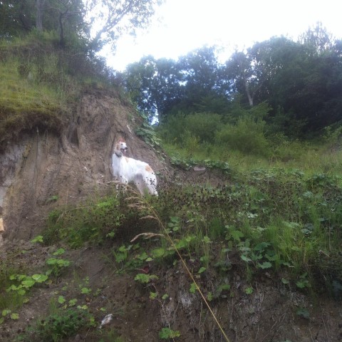 Und dann: Ab nach Hause! High lernte auch die anderen Rüden und Volia kennen, sie vertragen sich gut! Auch machte sie Bekanntschaft mit den anderen Haus-und Hofbewohner. Hier sieht man Mick als biologischen Rasenmäher.
