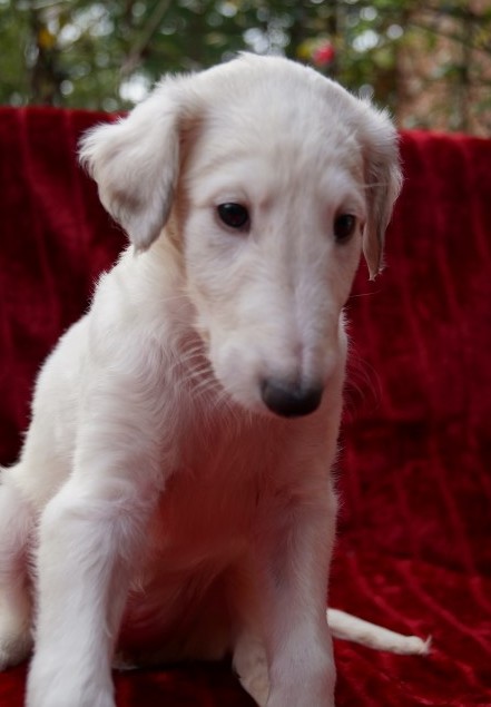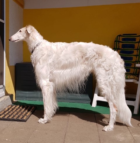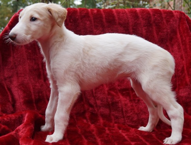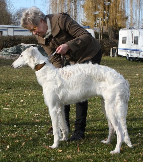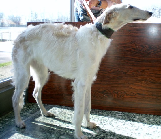 07.12.2014: Augenweide und ihr Bruder Avalon verließen uns am 07.12. und zogen bei ihren neuen Frauchen ein. Wir telefonieren zwar regelmäßig, denn "Kinder" verbinden, doch leider habe ich noch keine Bilder von den beiden. Doch das kommt noch. Spätestens auf den Ausstellungen im Sommer werde ich beide in Natura wiedersehen. 01.03.2015: Erste Fotos von "Augenweide", sie ist auch sehr schön! ![]() ![]() Augenweide auf dem Hunderennbahn: Da möchte sie natürlich schnell laufen und findet es gar nicht gut, für ein paar Fotos an der Leine zu stehen, doch "schön stehen" kann sie schon sehr gut! ![]() 18.04.2015: Augenweide hat ihr Debuüt in Oberhausen-Rheinhausen! ![]() Avalon Avalon ist nach München gezogen und hat in Bogenhausen einen 2 000 m2 großen Garten! Auch am Plattensee besitzt die Familie ein Wochenendhaus mit riesigem Grundstück! Er hat es da sehr gut! Almazka Stepnaja-Purga 12.11.2014: Almazka hatte den weitesten Weg zu ihrem neuen Zuhause und auch sie ist gut angekommen und es geht ihr gut. Von ihr habe ich noch keine Fotos, jedoch regelmäßen Telefonkontakt. Ihr neues Herrchen kann nicht so gut mit dem PC, aber das macht nichts, Hauptsache, es geht ihnen allen gut. Aquamarin Aquamarin wird uns am 01.01.2015 verlassen, er geht zu lieben Freunden und ihn werde ich auch oft wiedersehen.