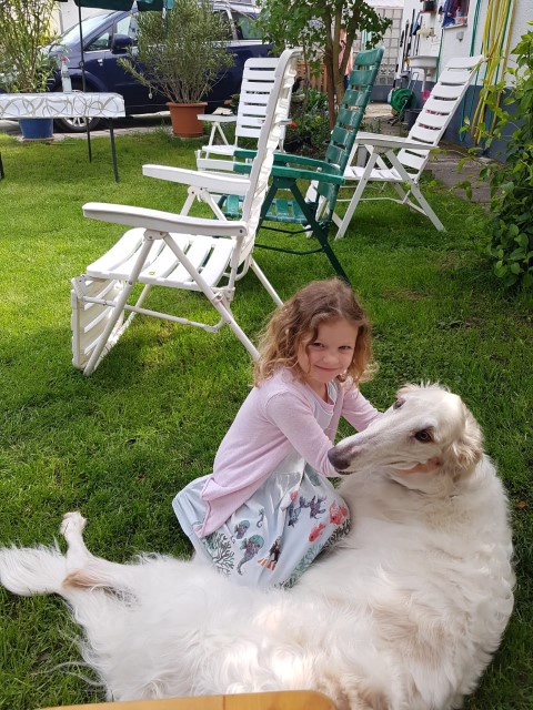 Heute ( 11.07.2018 ) ist Asja eine schöne junge Barsoihündin, die ihr Leben genießt! Sie darf frei rennen nach Herzenslust! An ihrer Seite ist immer noch Lea, und es ist eine Freude, die beiden spielen zu sehen!
