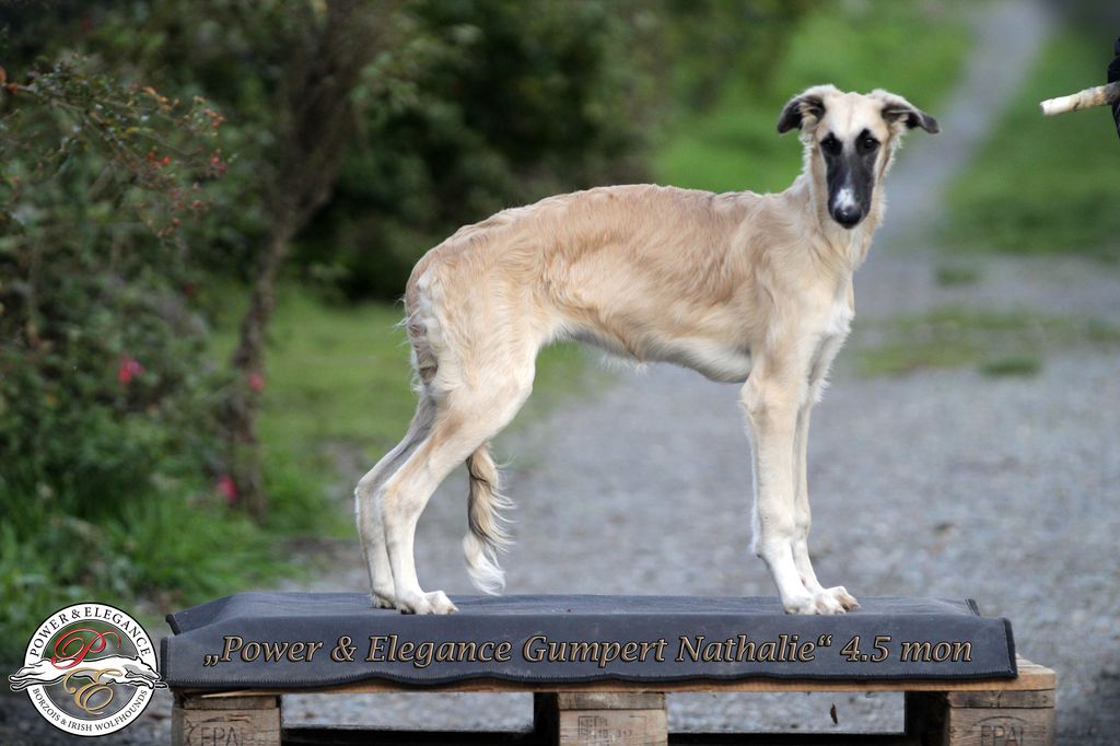 ![]() Das ist ihr Erwachsenenhaarkleid, hier 12 Monate alt. So erhält man ungefähr eine Vorstellung davon, wie die Welpen sich später präsentieren können. Und jetzt noch einmal zu Nathalie, hier 2 Fotos im Alter von 4 1/2 und 12 Monaten.